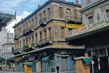 Η κεντρική αγορά της Αθήνας την Κυριακή. Αυτή είναι η γωνία των οδών Αθηνάς και Ευριπίδου. Παρατηρήστε τα σημάδια Λάρι Λαμπροπούλου.