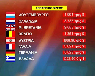 Είδα στο διαδίκτυο τον κατάλογο με τα χρέη όλων των χωρών της γης. Ενδεικτικά...